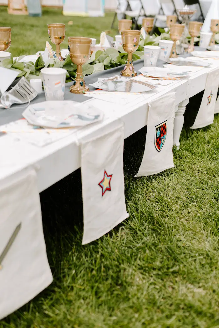 Add goodie bags: fabric crown - little girls, sword of wood/bow with arrows - for boys.