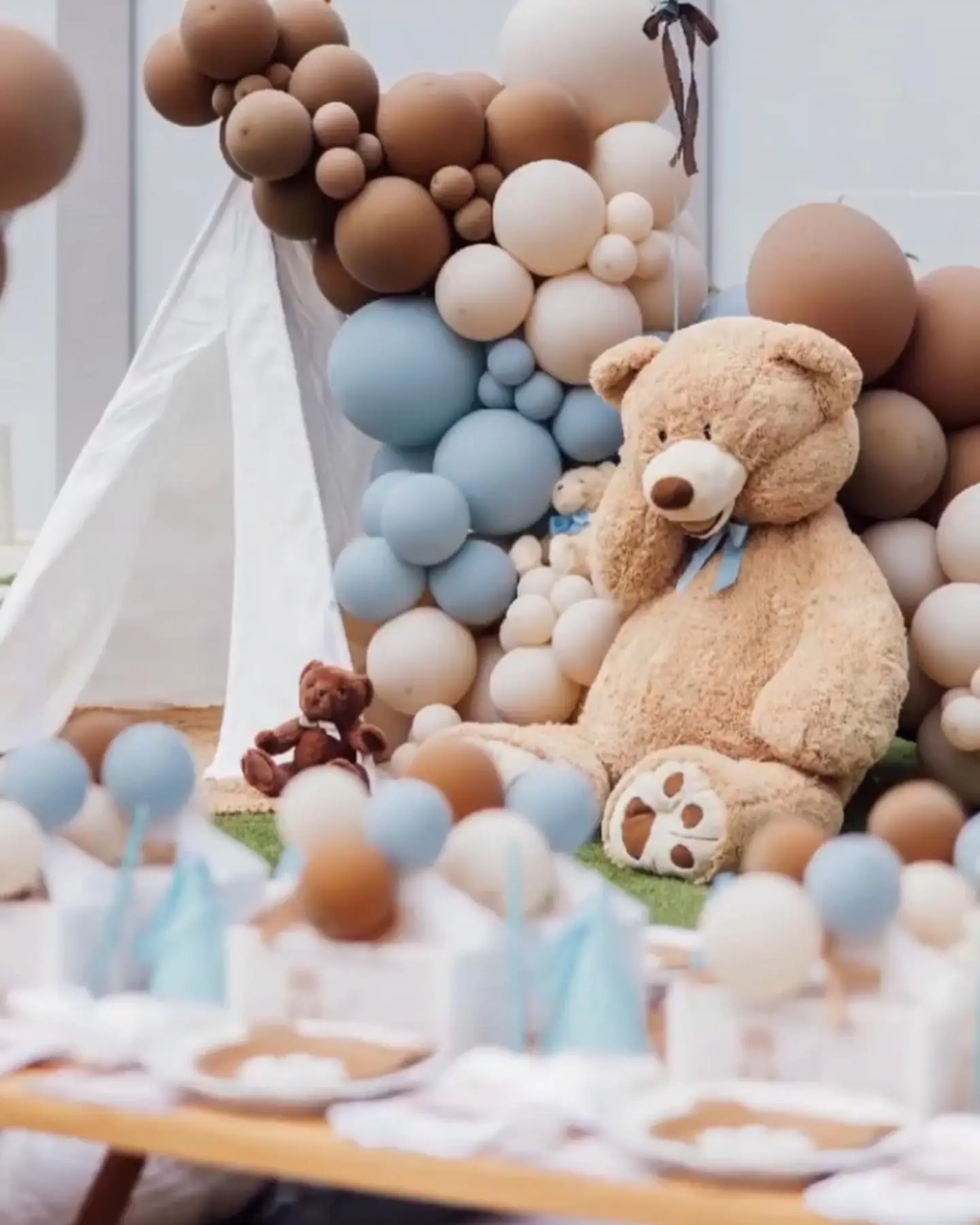 - Cards decorated with balloons & Teddy bear xxl, rattan mats